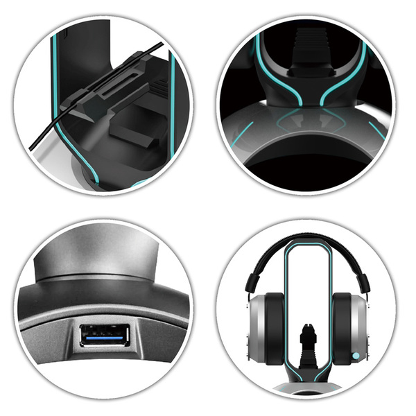The stylish LC-HUB-HEAD-BUNGEE unites USB hub, headphone holder & mouse bungee in one device!